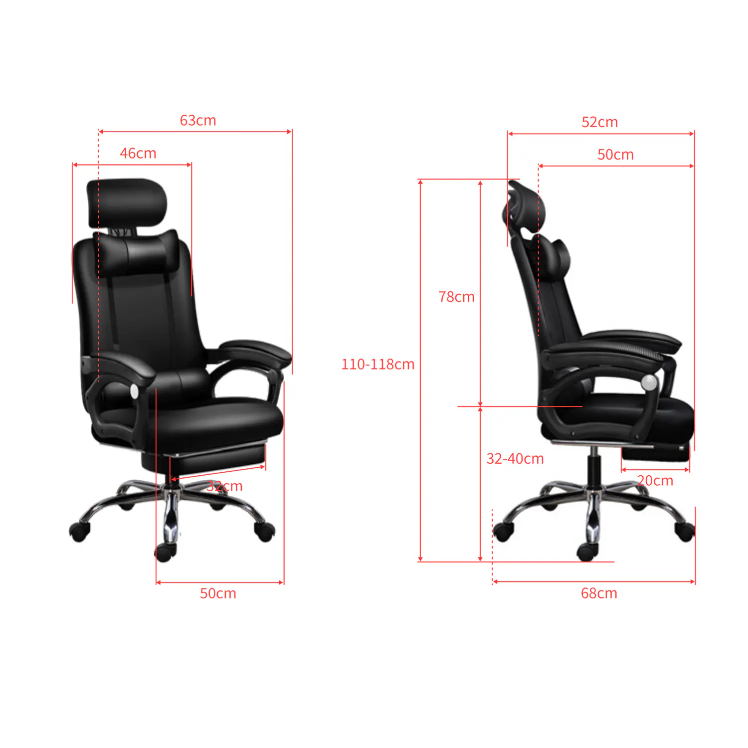 What sets this Wholesale Office Chair With Footrest apart is its versatile adjustability and quality build. The chair features a lockable recline, flexible headrest, padded armrests, and smooth pneumatic height adjustment to suit different body types. Breathable mesh keeps users cool, while the sturdy five-point base and smooth casters ensure durability and stability. Its ergonomic design supports healthy posture, reducing strain on the back, neck, and shoulders.