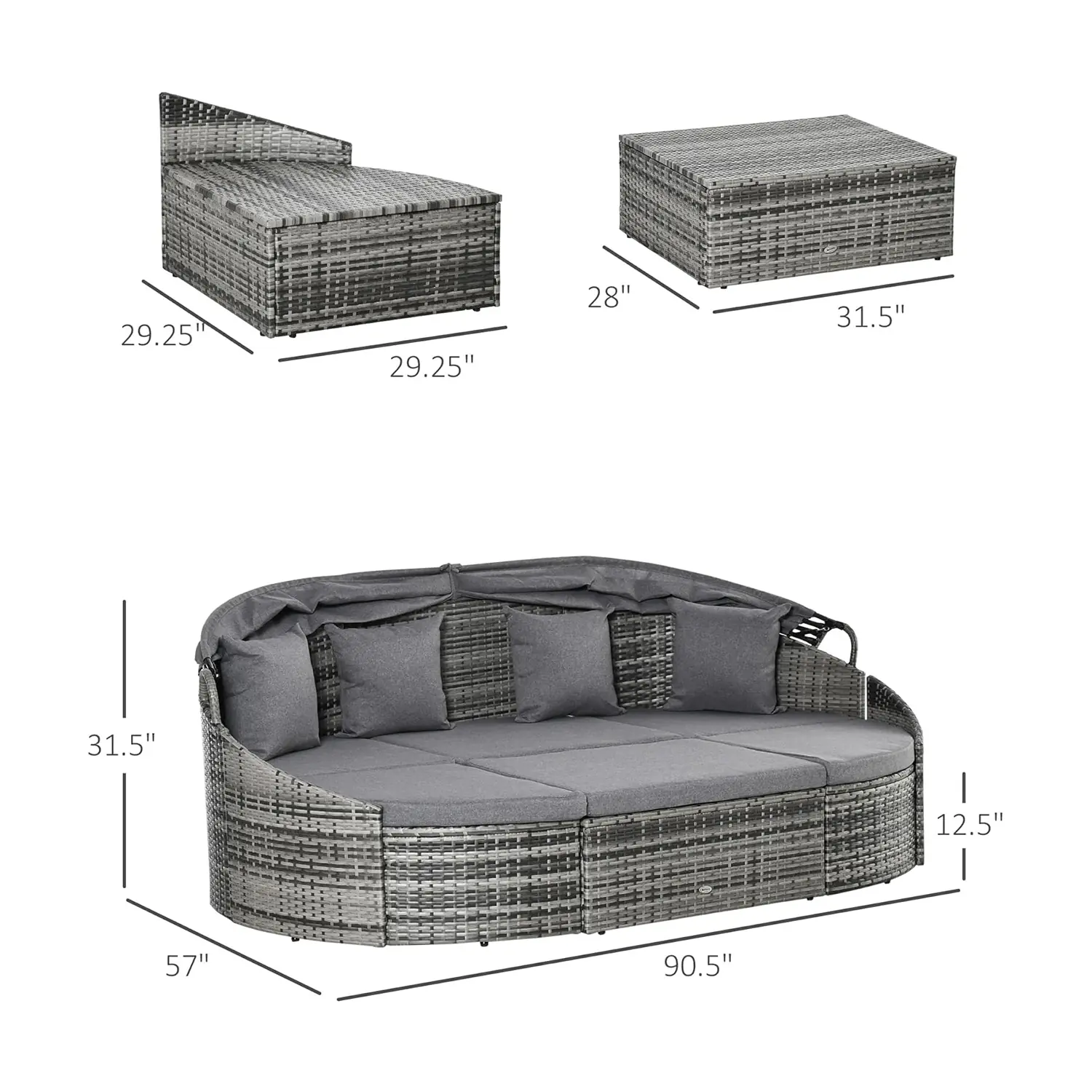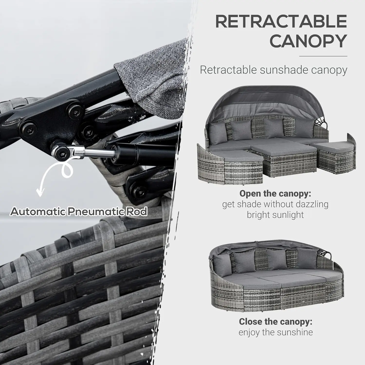This Wholesale Patio Furniture set features a retractable canopy for adjustable shade, plush cushions with washable covers, and adjustable feet for stability. Its convertible design allows flexible arrangements to meet customer preferences, making it a profitable choice for distributors and retailers targeting buyers who value both function and aesthetics.