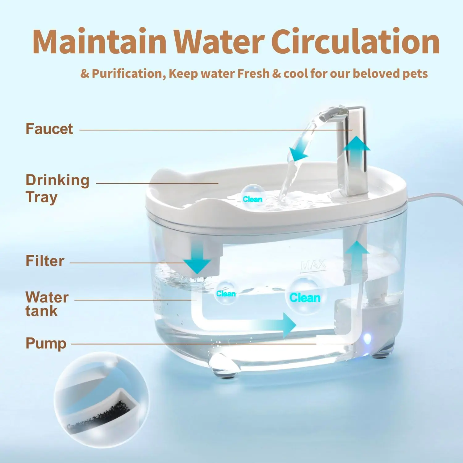 The Wholesale Pet water feeder delivers a reliable hydration system with a 50oz capacity, ideal for cats, kittens, and small dogs. Its flowing water design promotes healthy drinking habits, while the transparent body ensures water levels are always visible. Built for long-lasting use, it provides an easy-to-maintain solution for modern pet care.