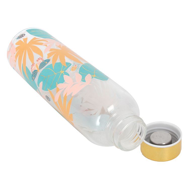 1. High quality. High borosilicate glass water bottle. Manufactured to the highest quality standards, our glass bottles have a lightweight design, and external printing, and are resistant to washing and scraping. Its screw cap ensures 100% sealing, perfect protection against leaks and safe storage.