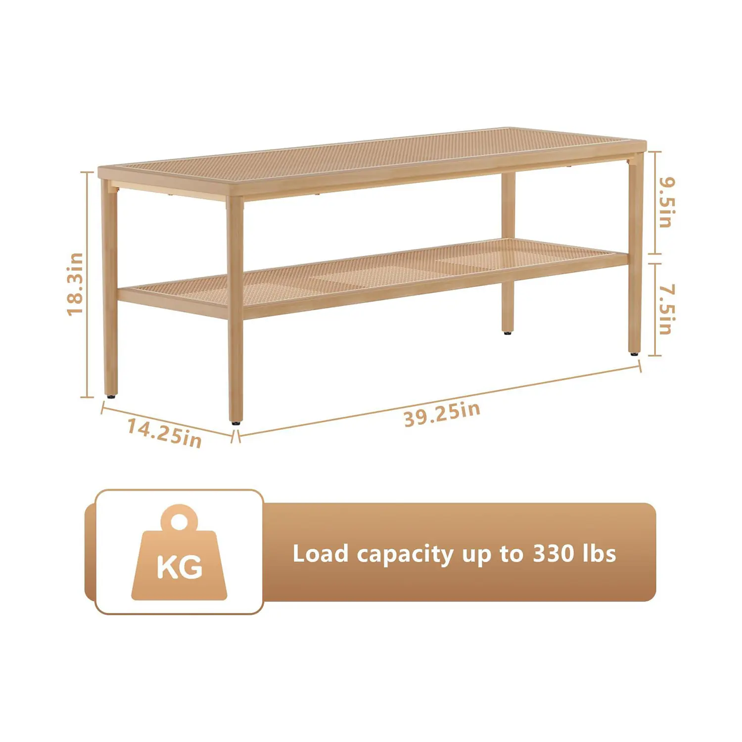 This Wholesale Shoe Rack Bench combines seating and storage in one functional design. Crafted with a rattan-style surface and sturdy wooden frame, it offers two spacious tiers to organize shoes while providing a comfortable bench for everyday use. Perfect for optimizing entryways, closets, or bedrooms with both practicality and decorative charm.