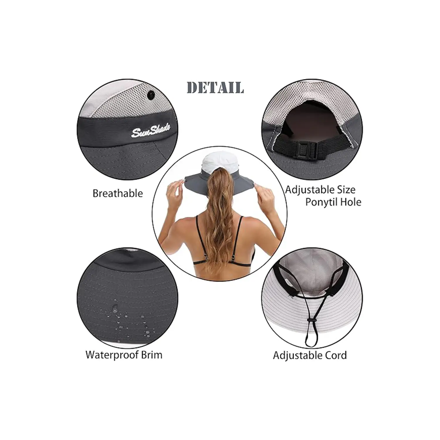 Designed with both functionality and fashion in mind, this Wholesale Sun Hat features a ponytail opening for comfort and convenience, a wide 3.35-inch brim for full sun coverage, and an adjustable chin strap for secure wear. The soft, breathable mesh enhances air circulation, while the sweatband keeps moisture away from the face. Easy to fold yet retains shape, it’s a reliable, travel-ready accessory for your customers seeking premium UV protection hats.