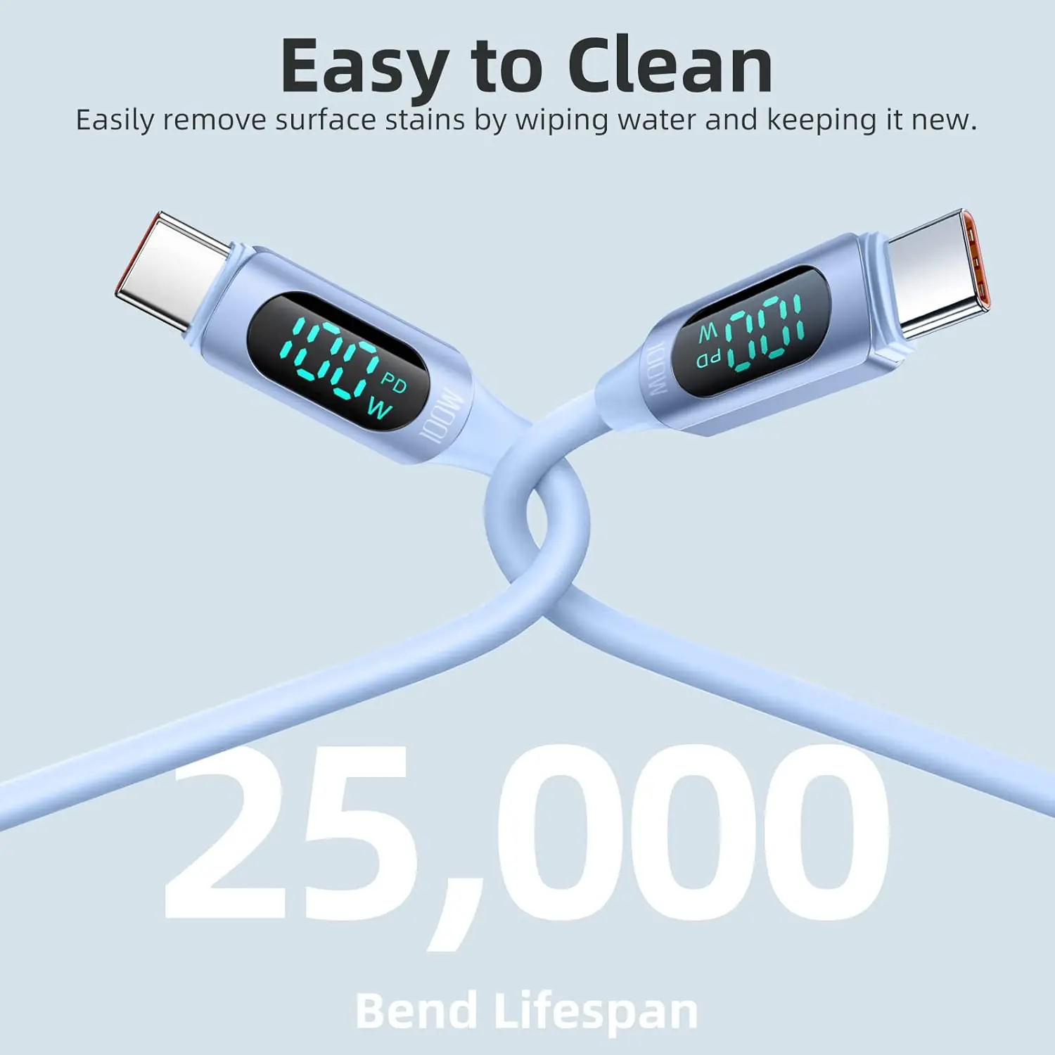 Built with zinc alloy connectors and durable silicone material, the Wholesale USB C Cable is tangle-free, flexible, and tested for 50,000+ bends. The integrated LED display shows real-time charging performance, protecting devices from unstable currents. Its universal compatibility makes it an excellent wholesale option.