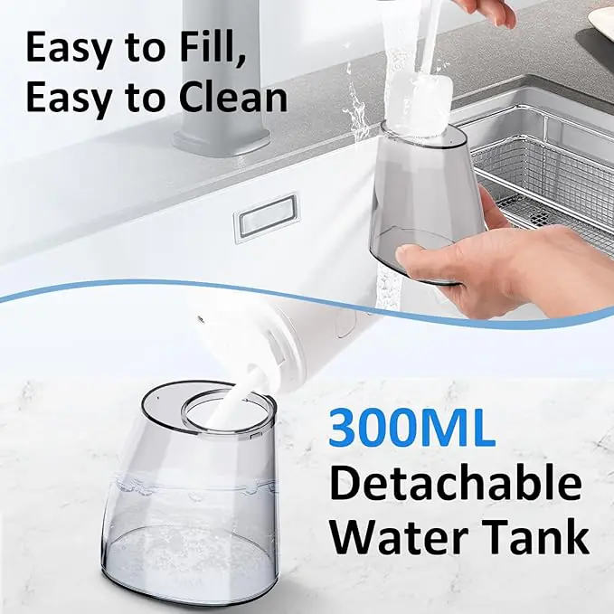 This Wholesale Water Flosser is designed to deliver professional-grade oral hygiene at home or on the go. With a 300ML detachable tank, 3 cleaning modes, and dentist-inspired jet tips, it removes up to 99.9% of food debris and plaque. Rechargeable, portable, and IPX7 waterproof, it is ideal for wholesale buyers seeking reliable solutions for dental care markets.