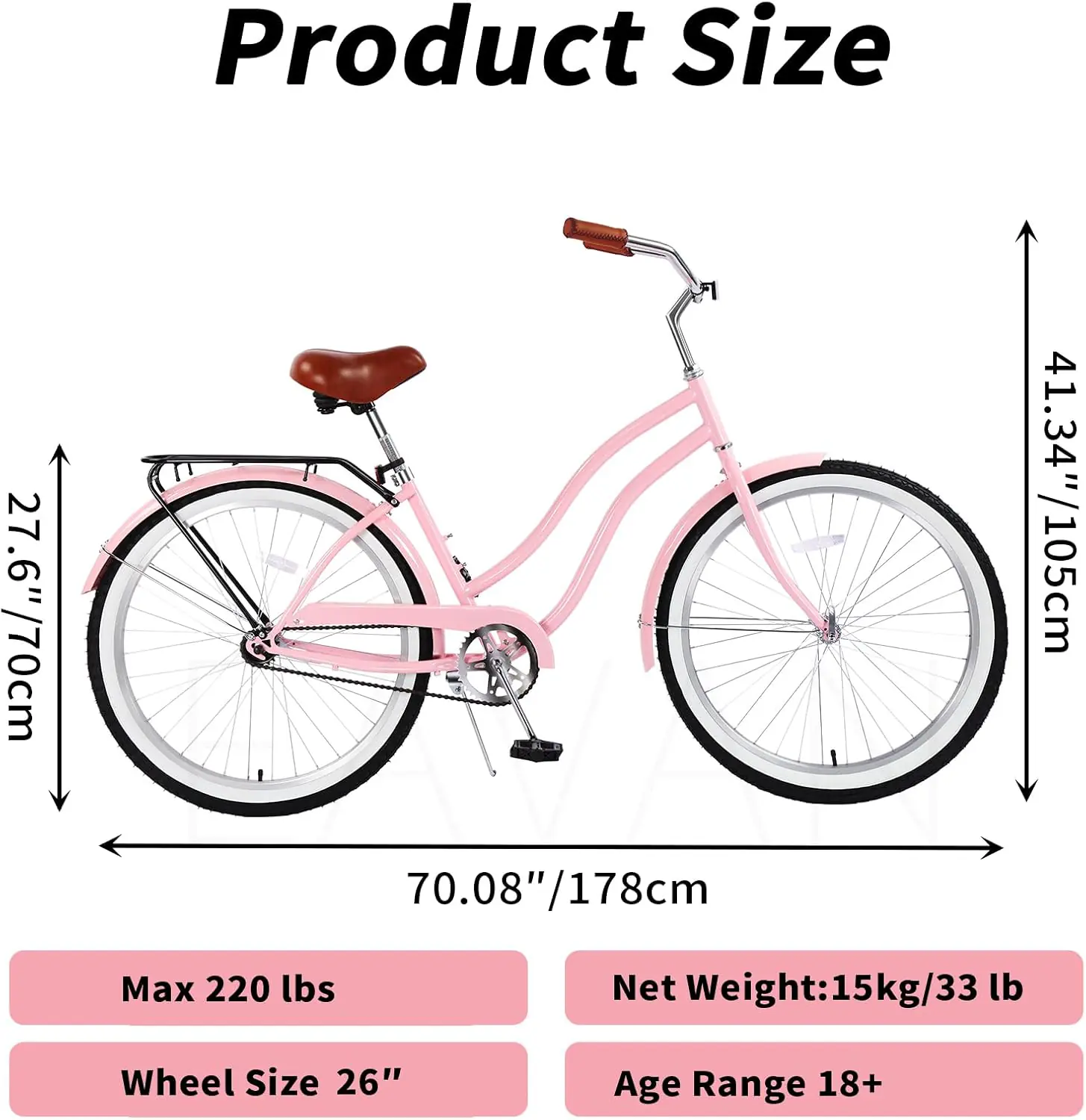 Ideal for coastal bike shops, urban rental fleets, and lifestyle-focused distributors, this wholesale women’s beach cruiser bike excels in recreational and city settings. It’s especially suited for beach towns, parks, resorts, and local delivery needs. Easy assembly and low maintenance make it an attractive product for wholesale programs targeting female leisure riders.