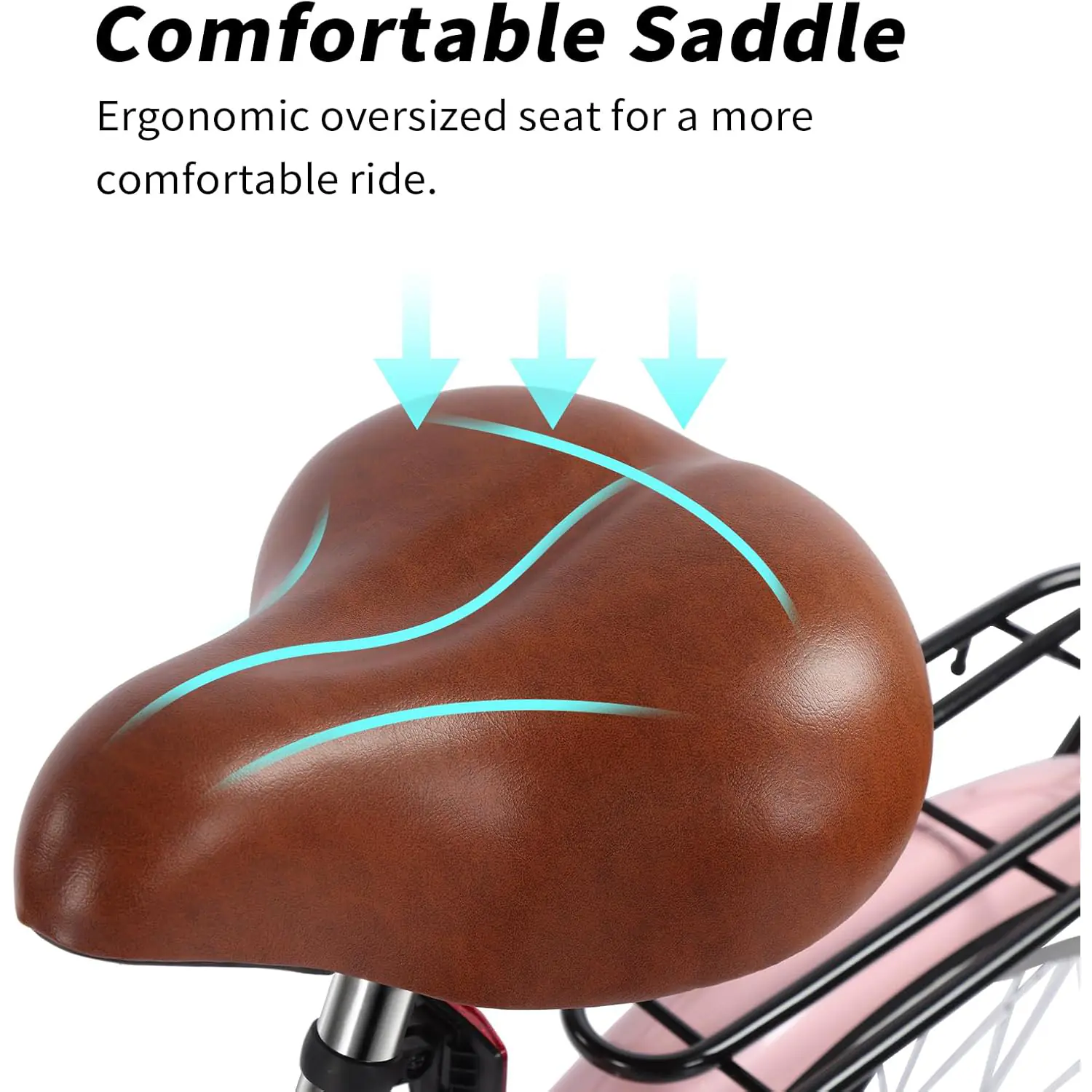 The wholesale women’s beach cruiser bike stands out with its thickened carbon steel frame—durable yet lightweight for effortless control. The rear coaster brake system allows simple, foot-powered stopping, making it safer and easier for beginners. Its minimalist retro design, large cushioned saddle, and included rear basket increase its value for bulk buyers targeting lifestyle and commuter segments.